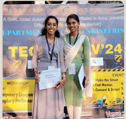 Bleslin Achsah J and Atchaya G B.E third year participated in YUKTA 2K24 symposium conducted by PSG Institute of Technology and Applied Research and won 2nd place in Surveyor Symphony.
