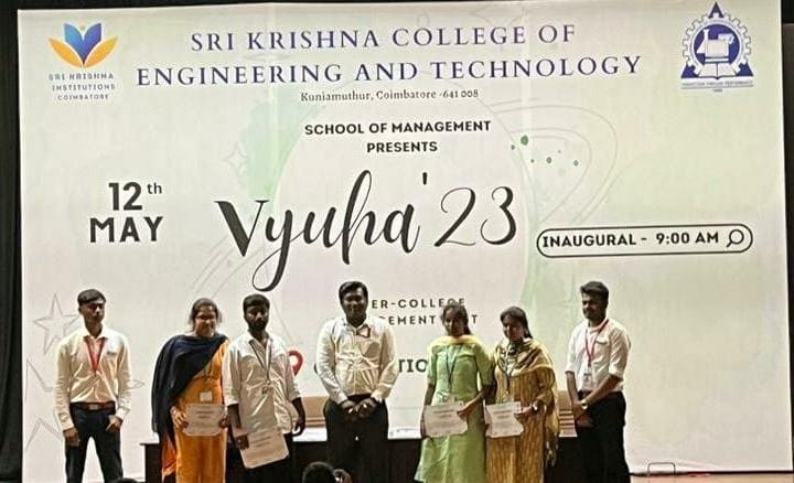 | Ms.Sowmya K | 2nd prize in Corp wolves | Vyuha 2023 at Sri Krishna College of Engineering and Technology |
