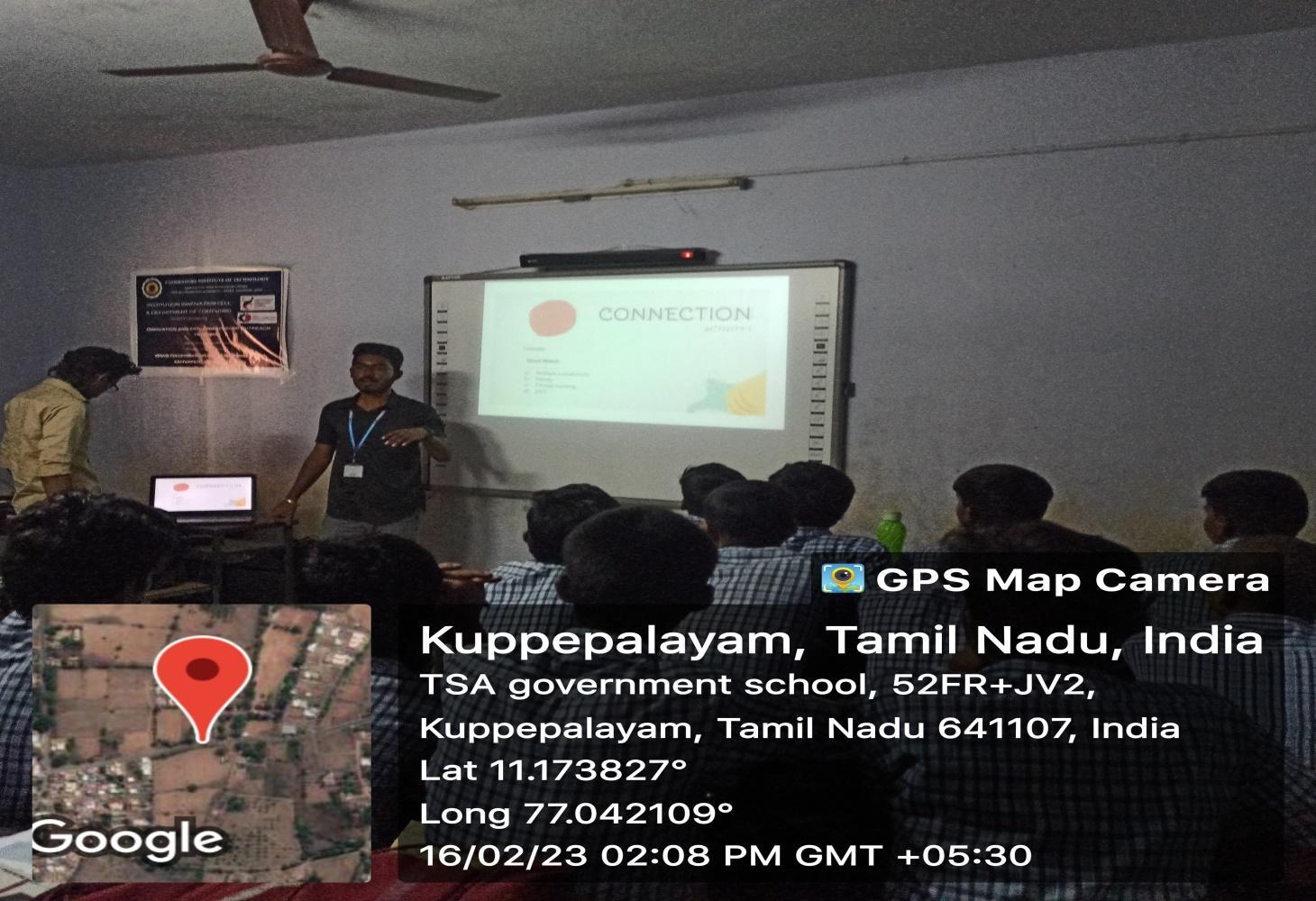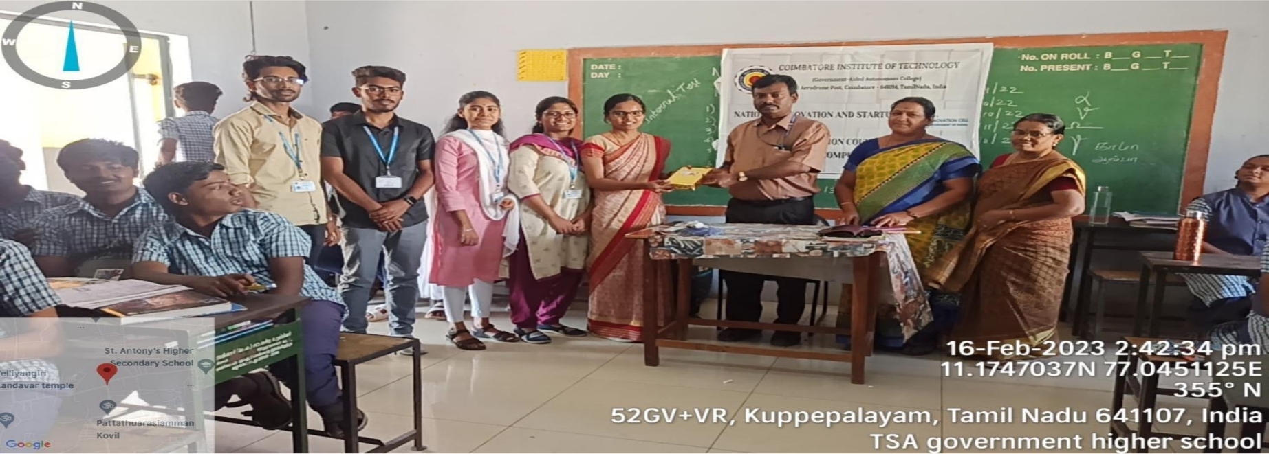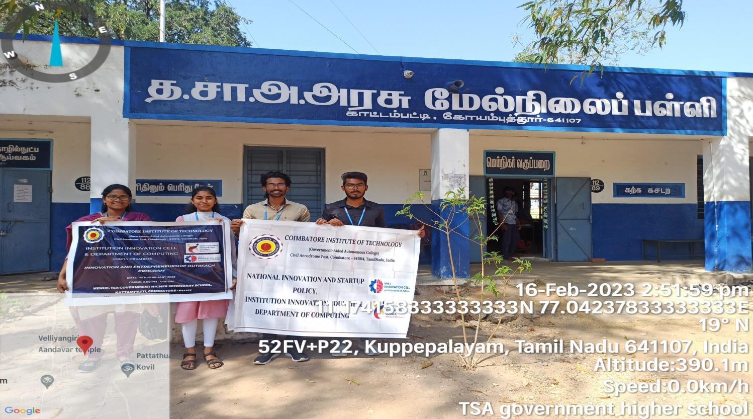 An event on Innovation & Entrepreneurship Outreach Program was conducted by the students of 4th year M.Sc. AI & ML. This program delivered knowledge about emerging innovations in Artificial Intelligence and Machine Learning to Grade 11 and 12 school students of TSA Government Higher Secondary School, Kattampatti, Coimbatore – 641107, on 16-02-2023.