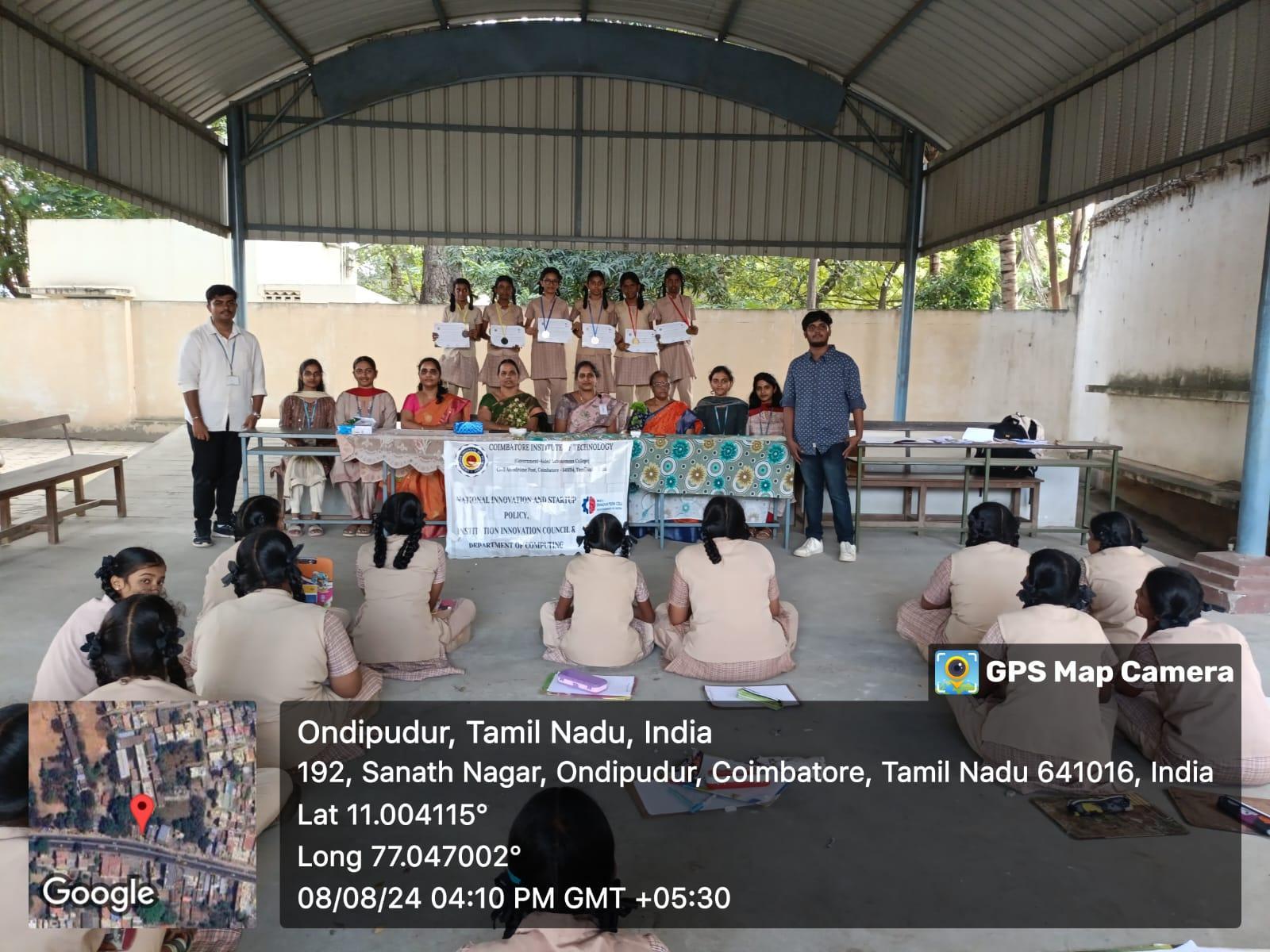 This event was conducted by students from M.Sc. AI&ML on August 8, 2024. iT was organized for 8th and 9th-grade students from R.C. Government Girls Higher Secondary School, Ondipudur. A total of 67 students participated, with many girls actively contributing new ideas and demonstrating a clear understanding of design thinking principles. The event aimed to introduce young minds to these principles and inspire them to become innovative problem-solvers.
